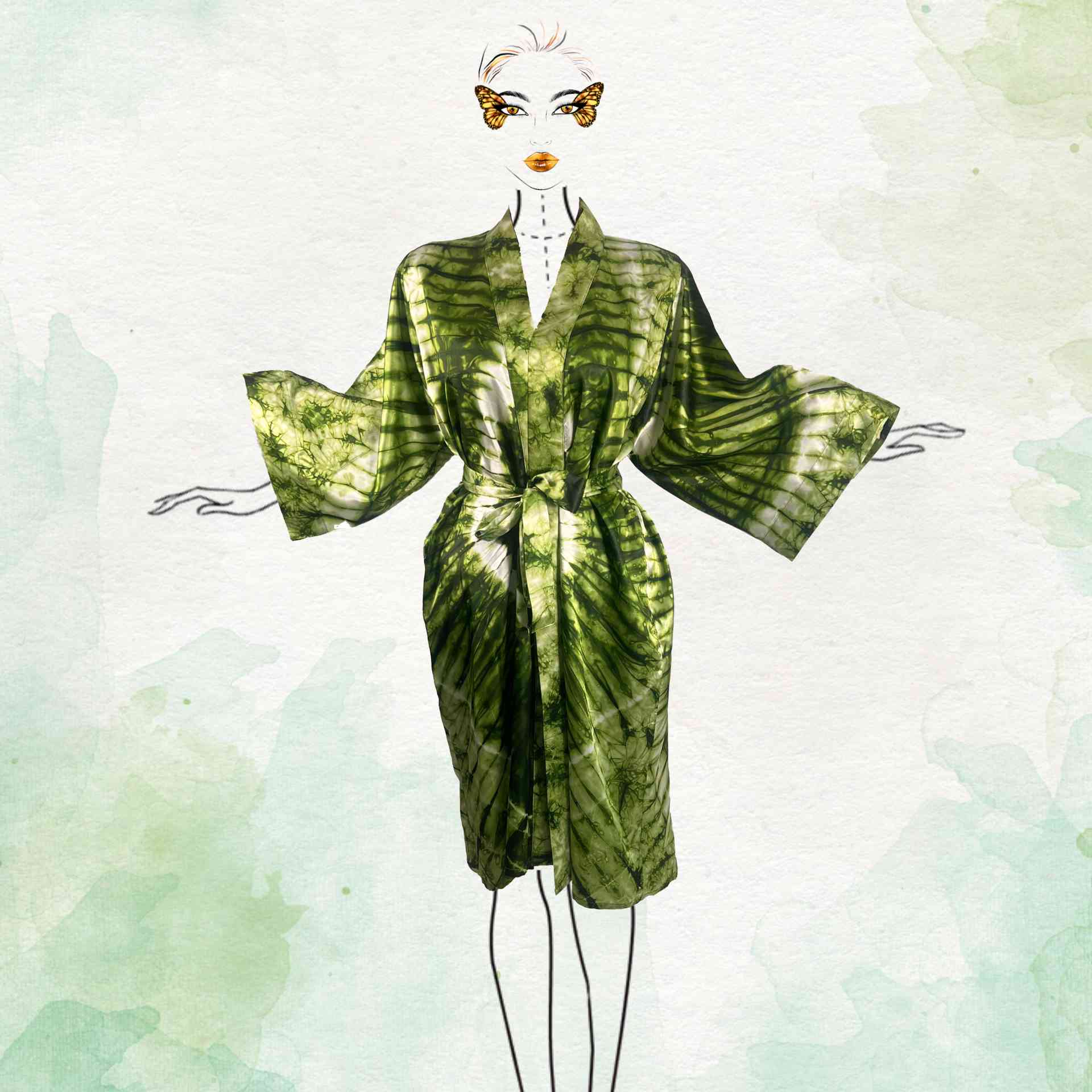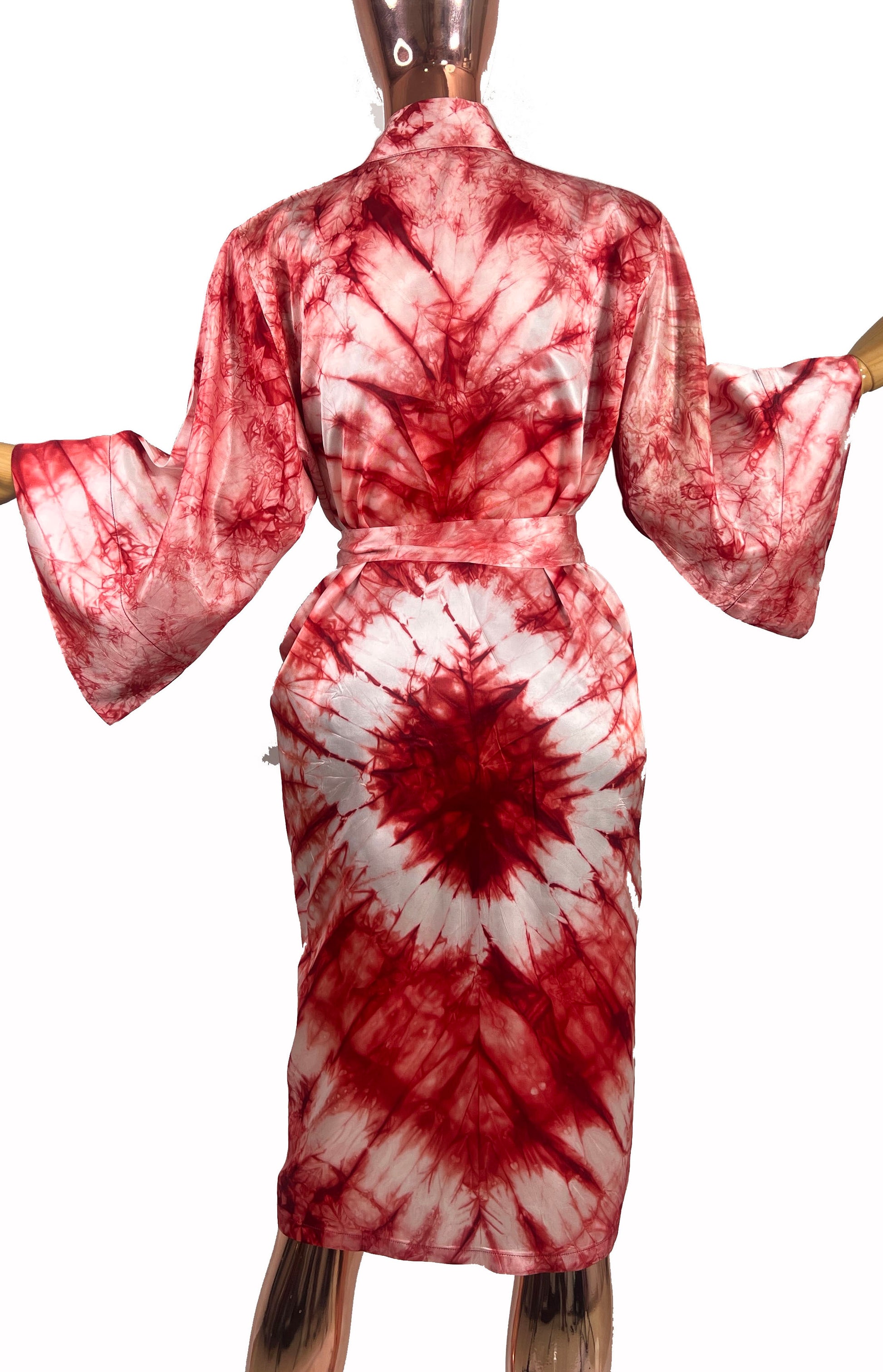 Light, luxurious smooth silky Tie-Dye fabric with belt and Wide sleeves. Open front. African Robe Kimono Beach cover up perfect for Bridal Shower/Bacherlorette, Loungewear, Knee Length style.