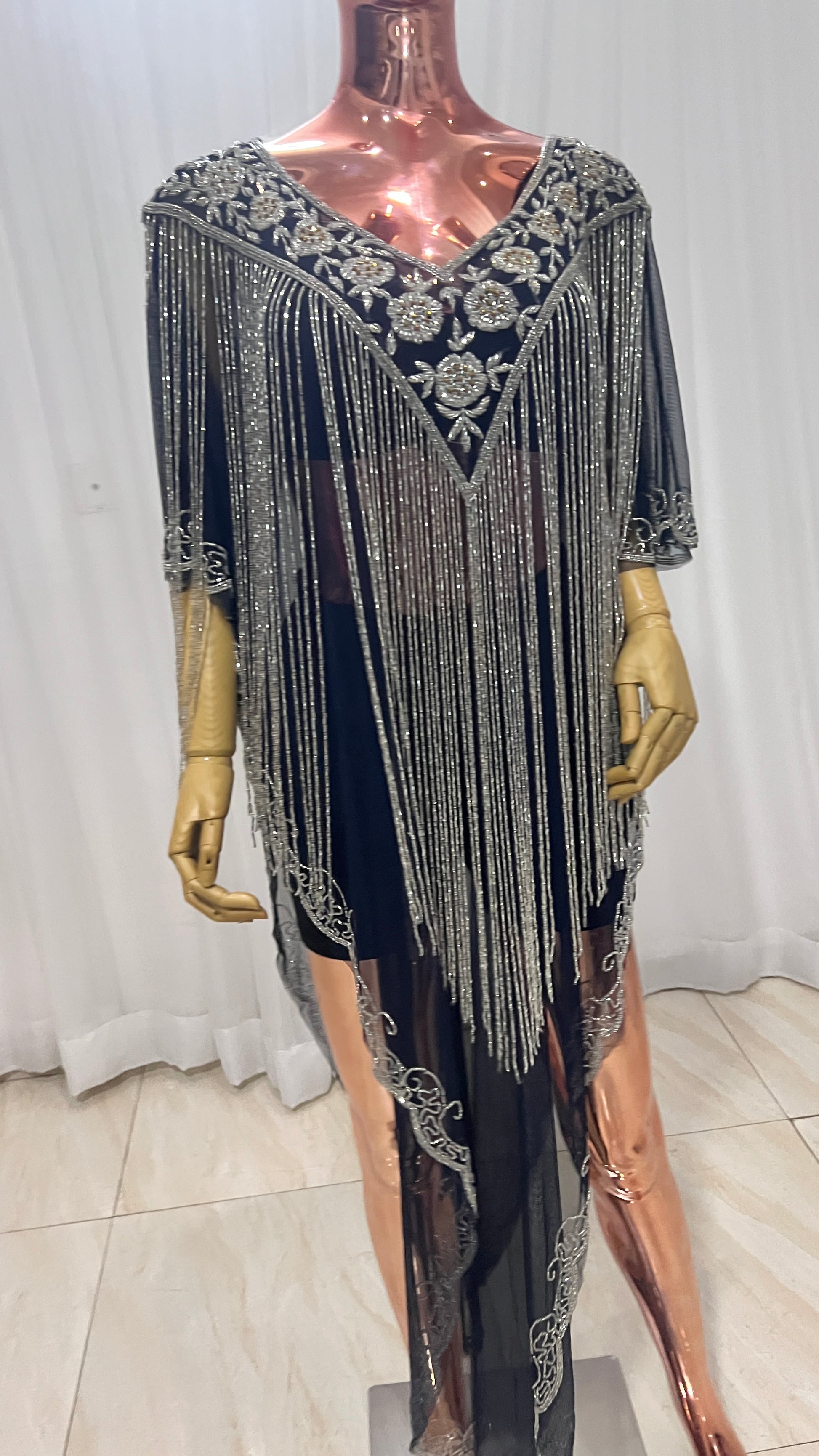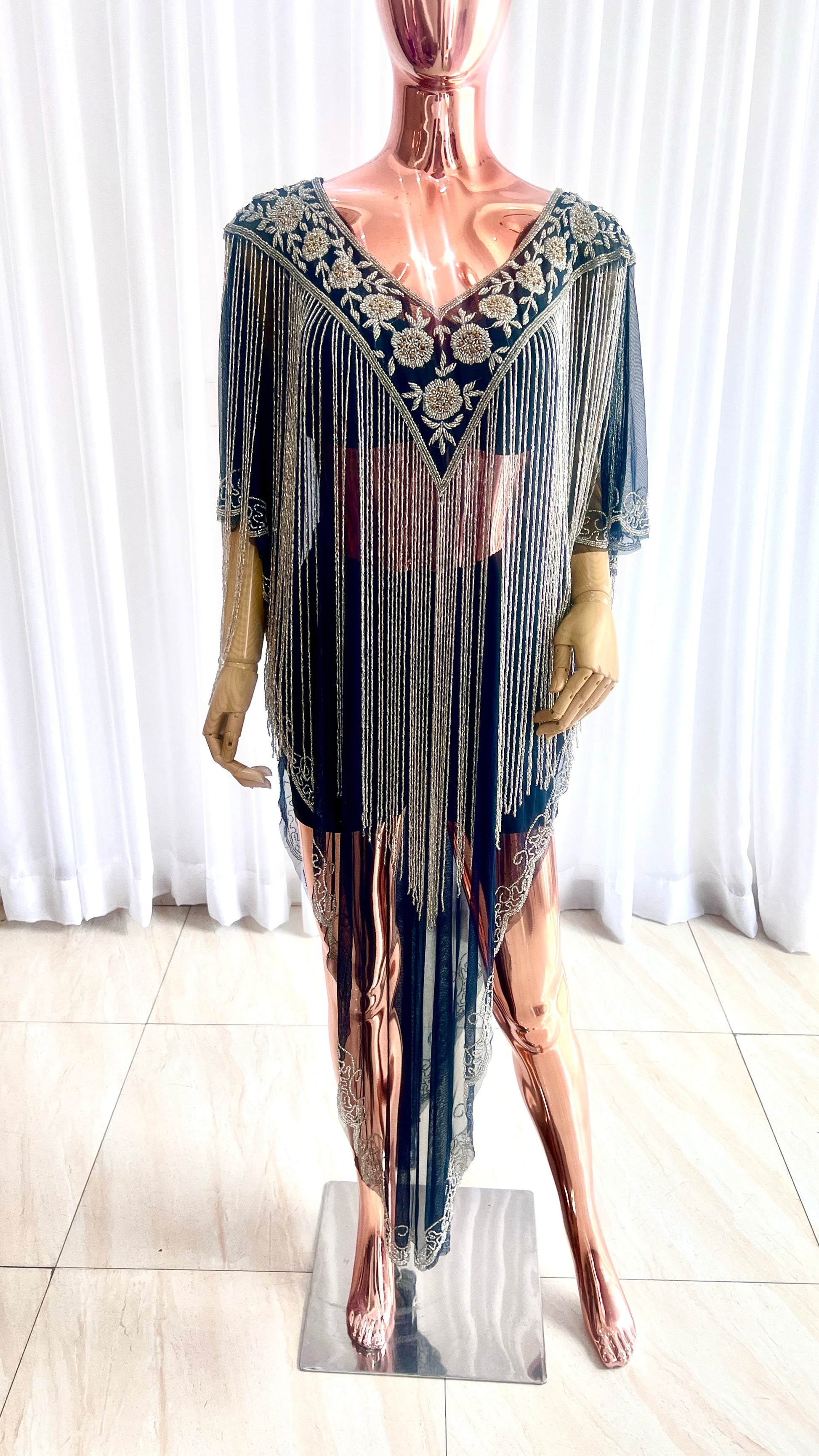 Beaded Net Kaftan Slit dress/Top. It can be styled in different ways, you can dress it up with high heels or dress down with flats/sneakers.