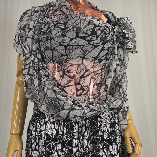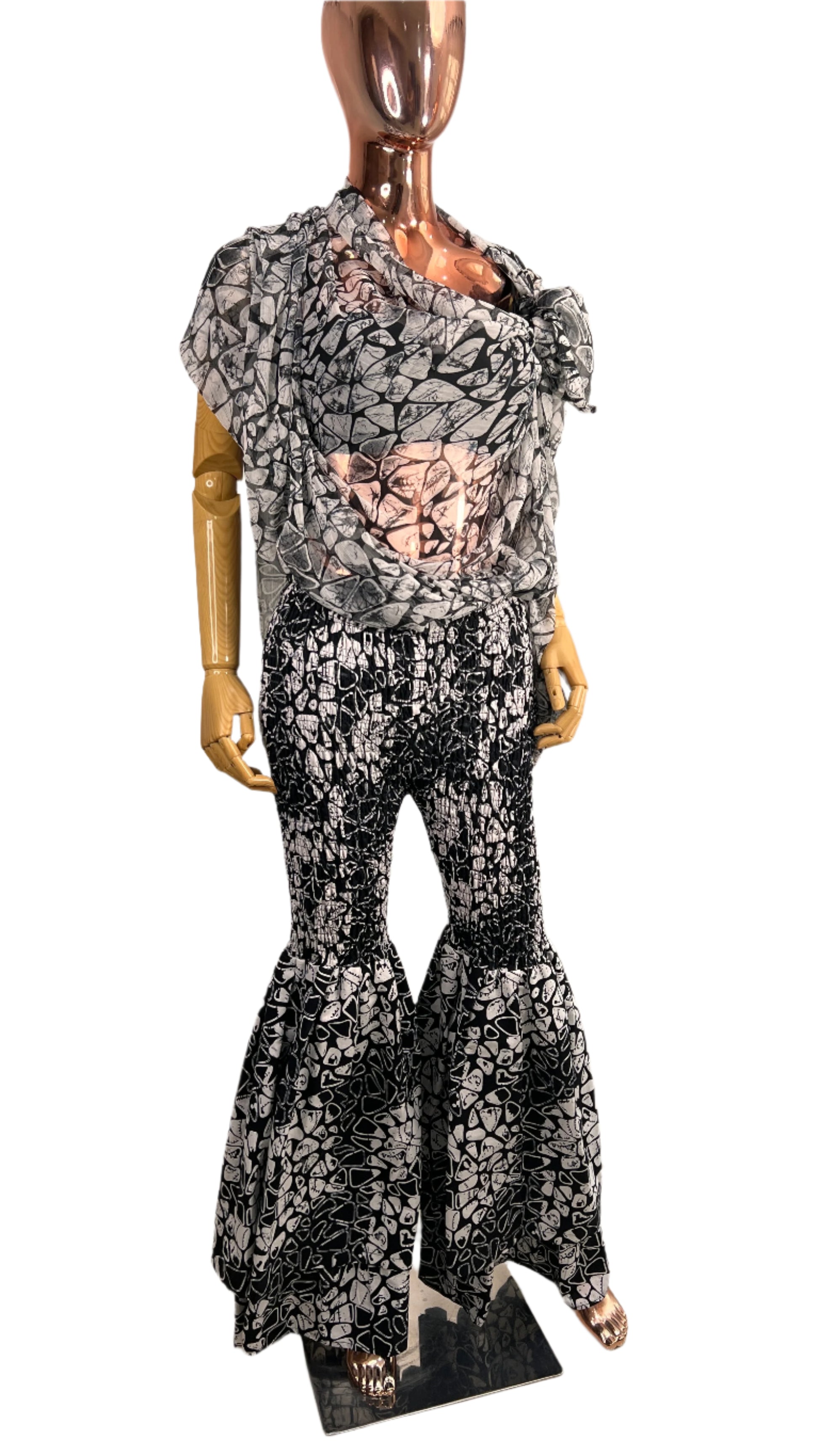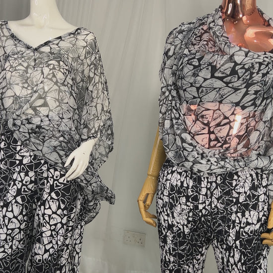 2Piece Summer Party Smocked Pant Set - Chiffon Top and Cotton Pants -