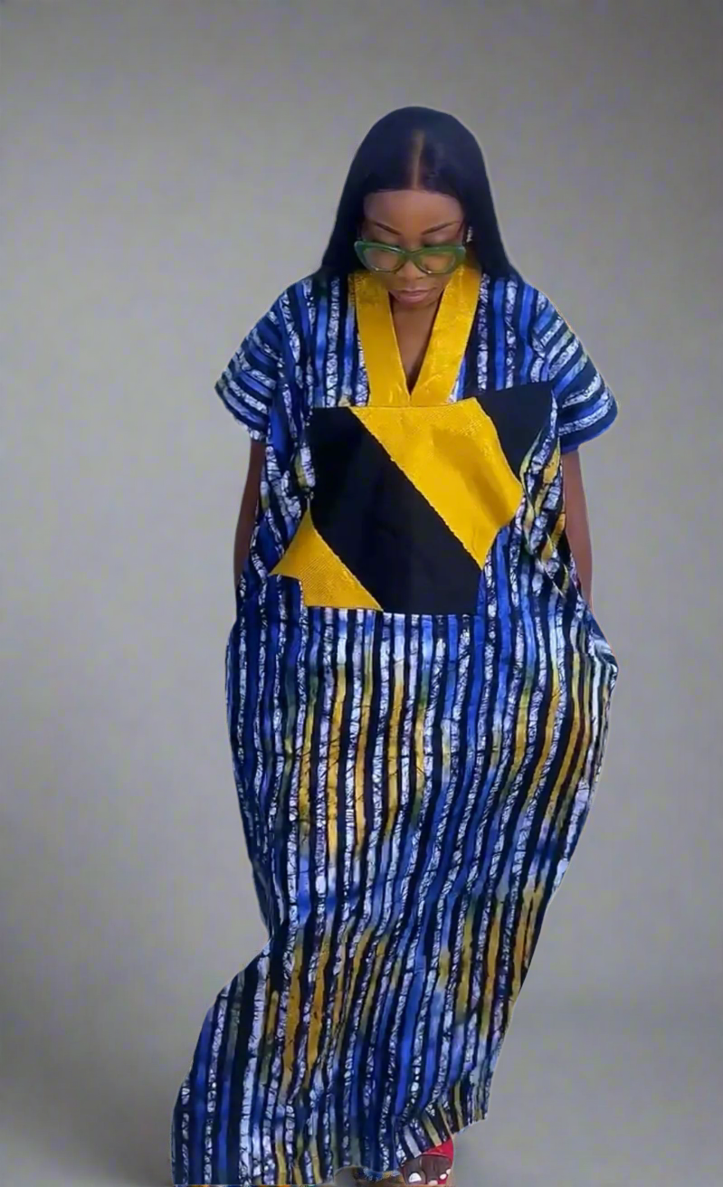 Batik Cotton Brocade Kaftan maxi dress. It can be styled in different ways, you can dress it up with high heels or dress down with flats/sneakers.