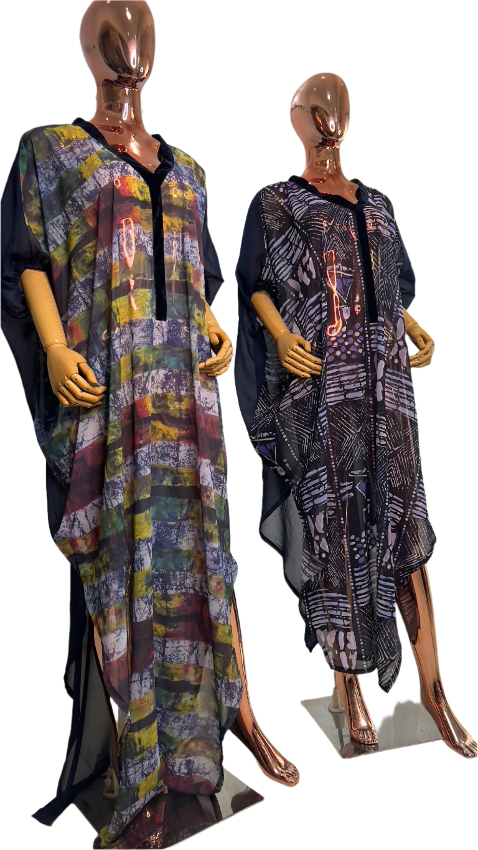 This Adire Ankara Silk Kaftan maxi dress is made with Polysilk. It can be styled in different ways, you can dress it up with high heels or dress down with flats/sneakers. The Hand can be worn in 2 ways. one ways shows off the arm, the 2nd way has the arm covered for modesty. Notice the slits.