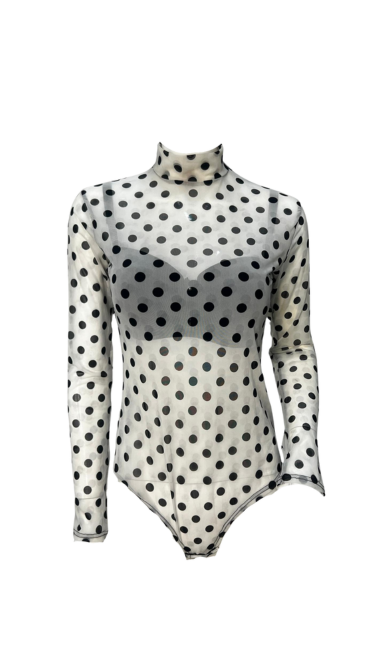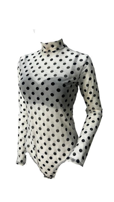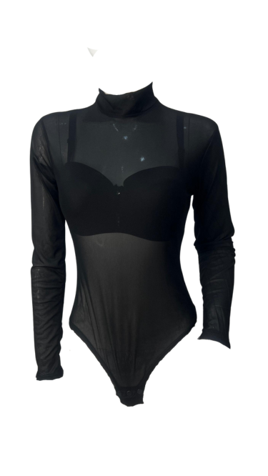This is a Bodysuit in mesh fabric. It can be styled in different ways, you can wear with skirts, Trousers, shorts or however your style leads you.